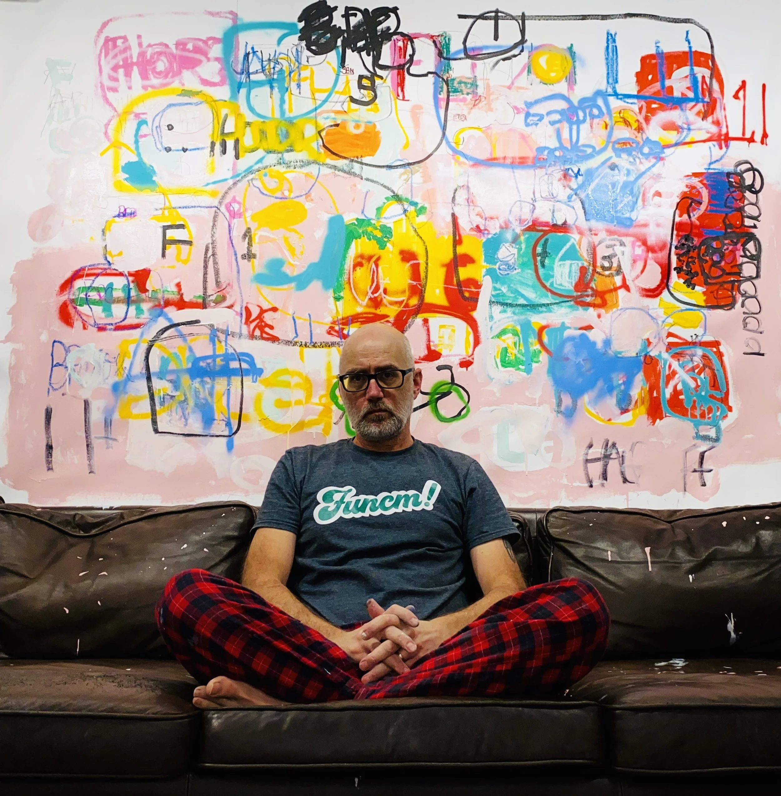 Finally, in early 2020 at the age of 49, Tim painted for the first time. Over the next two years, his practice would generate over 500 works on canvas and paper-primarily using acrylics, oil pastels, tempera sticks, markers, and wax crayons.